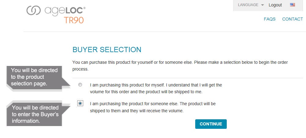 Select if you are purchasing the product for yourself or placing the volume under someone else.